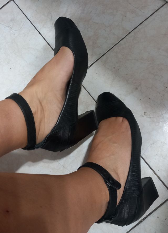 Zapatos negros salón tacón cuadrado correa tobillo