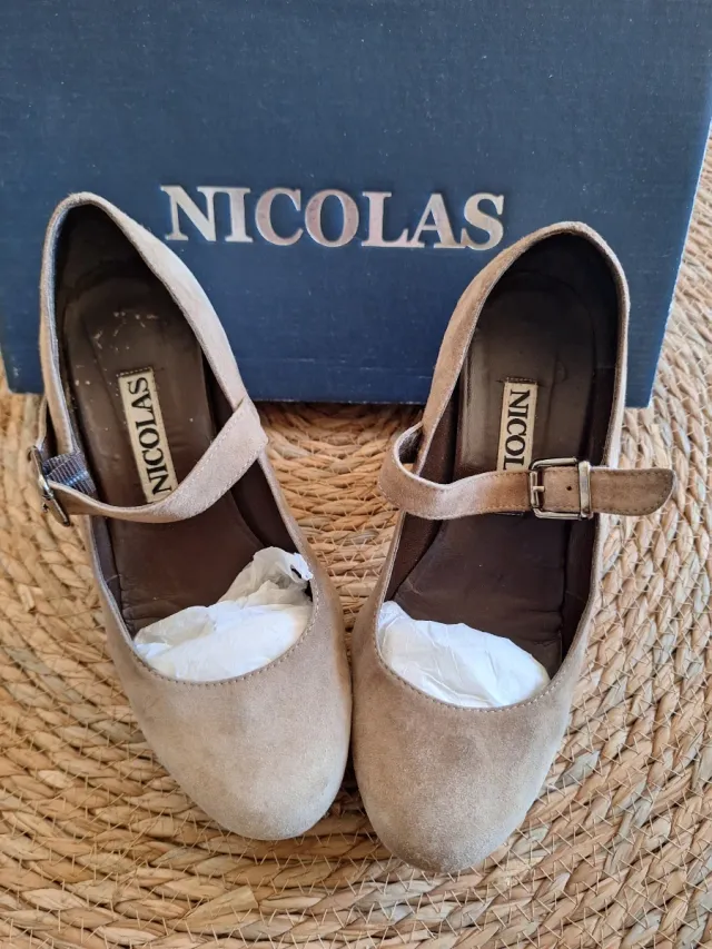 Zapatos Nicolas Talla 37 Cuña Ante Taupé