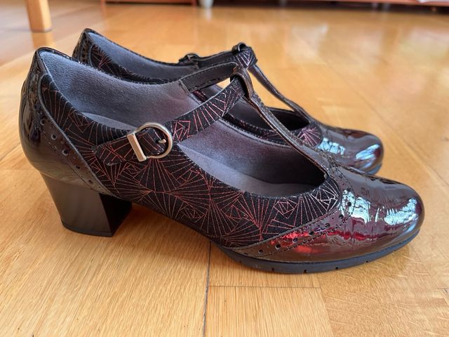 Zapatos Pitillos T-Strap Charol Rojo/Negro