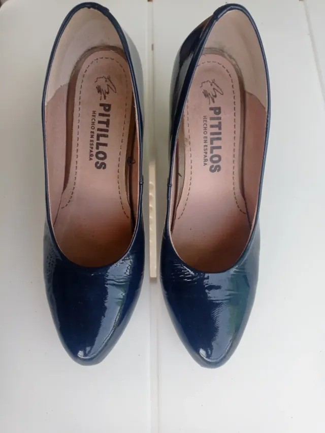 Zapatos Pitillos Talla 38 Azul Charol