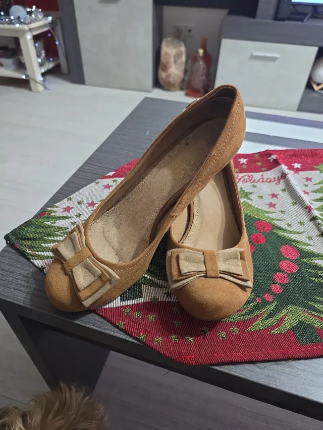 Zapatos planos marrones con lazo