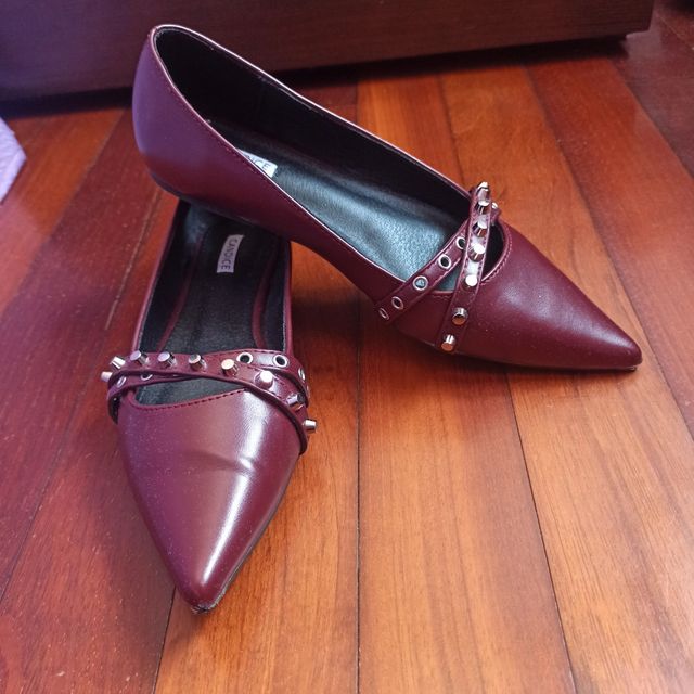 Zapatos planos mujer burdeos con tachuelas