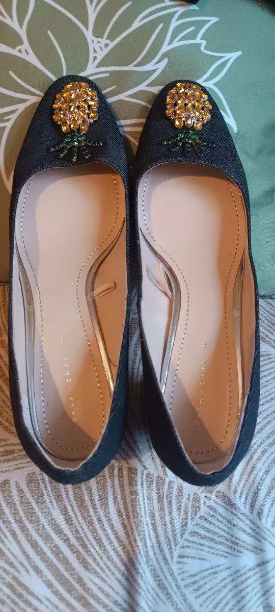 Zapatos planos Zara con piña dorada Tejido vaquero