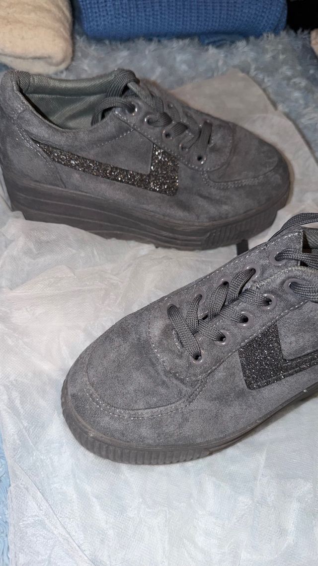 Zapatos plataforma grises con brillantes