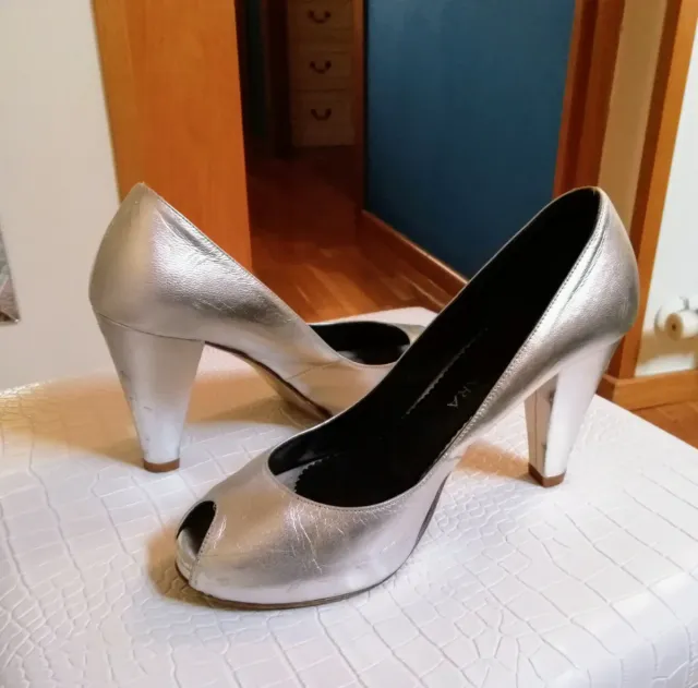 Zapatos Rosa Clara plateados peep toe