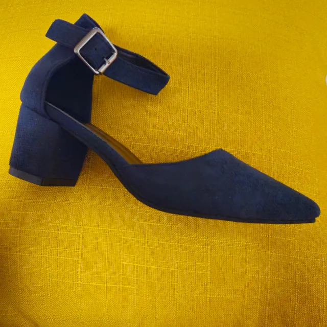 Zapatos salón n°37 de ante,tacón ancho azul marino