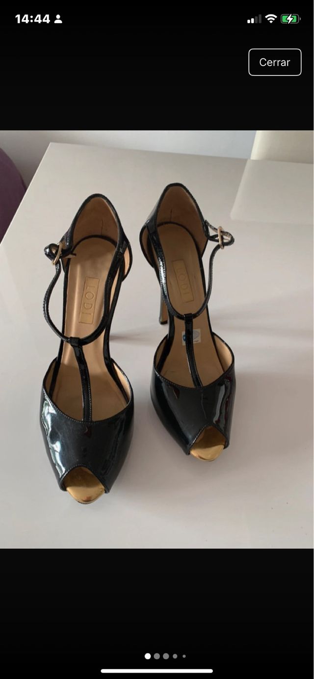 Zapatos Sandalia Charol LODI Negro y Dorado
