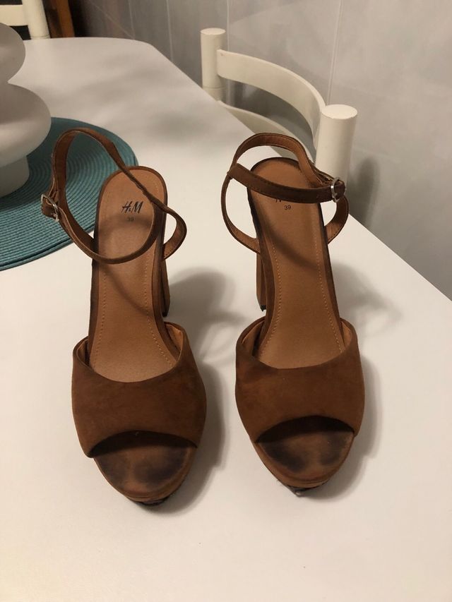 Zapatos tacón antelina color camel. H&M