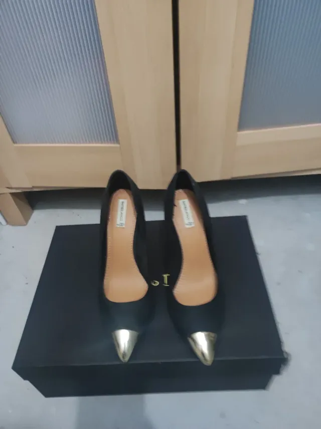 Zapatos tacón negros y dorados T36