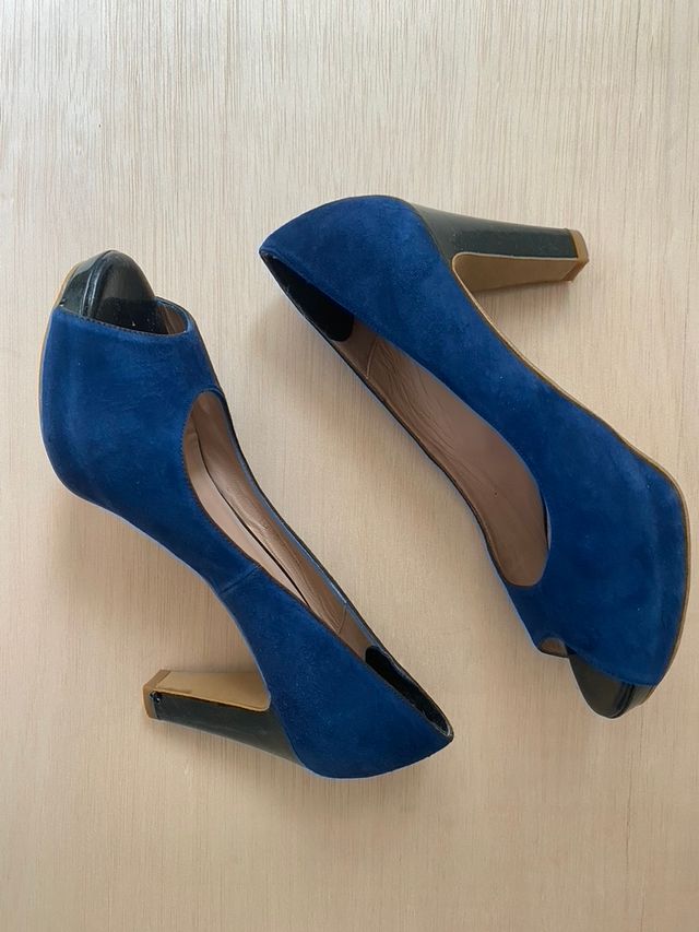 Zapatos tacón piel azul talla 38