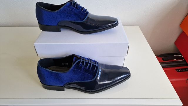 Zapatos vestir charol y terciopelo azul