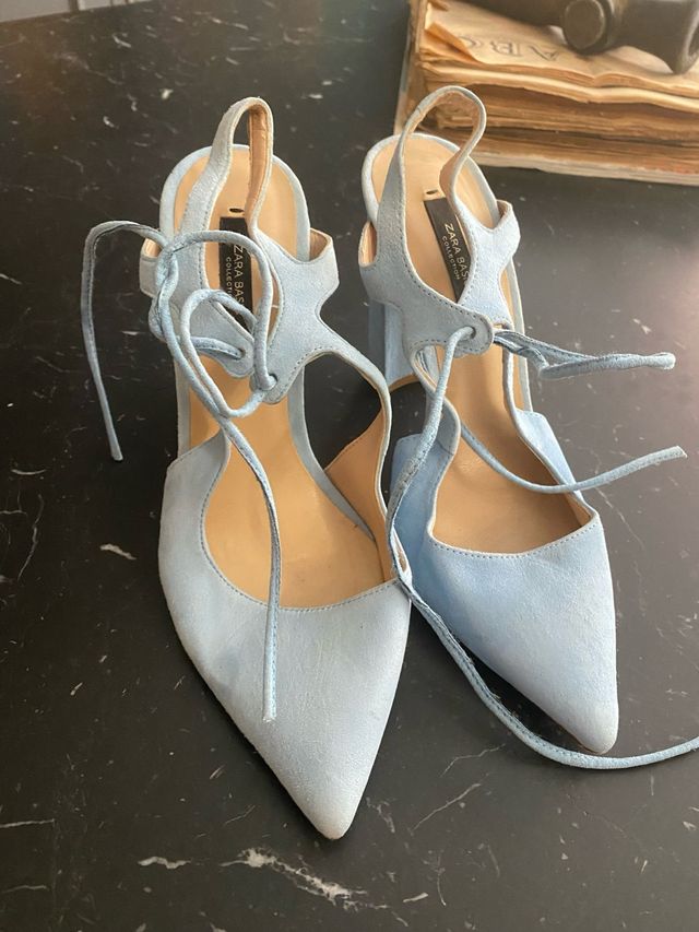 Zapatos Zara Azul Ante Tacón