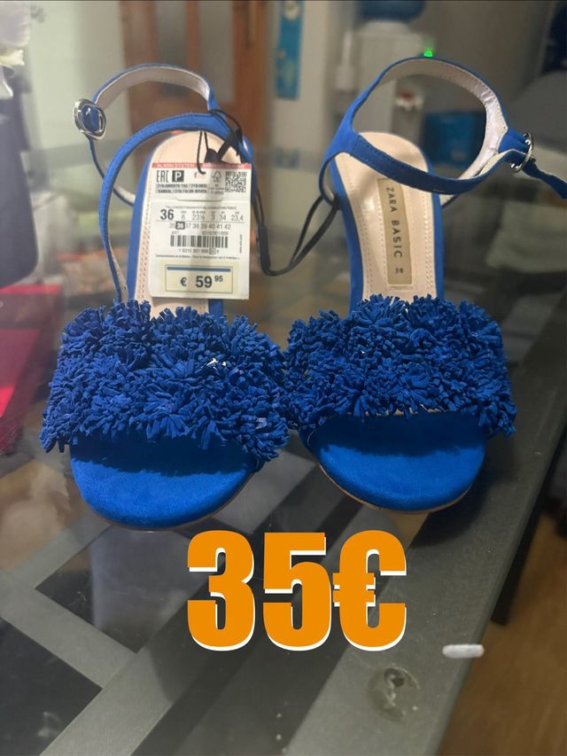 Zapatos Zara Basic tacón azul flores 36 3️⃣5️⃣€