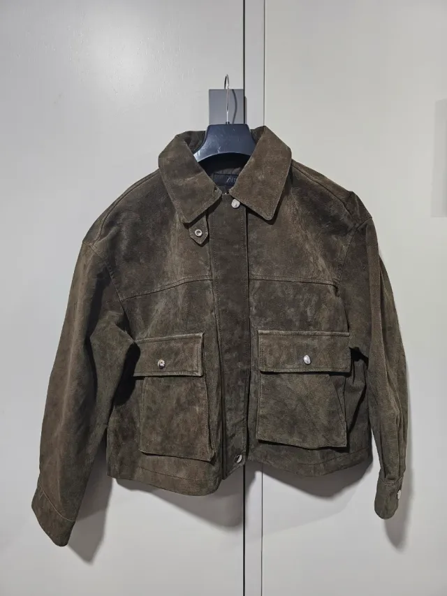 Zara Cazadora Bomber 100% Piel Khaki 8073/253/505