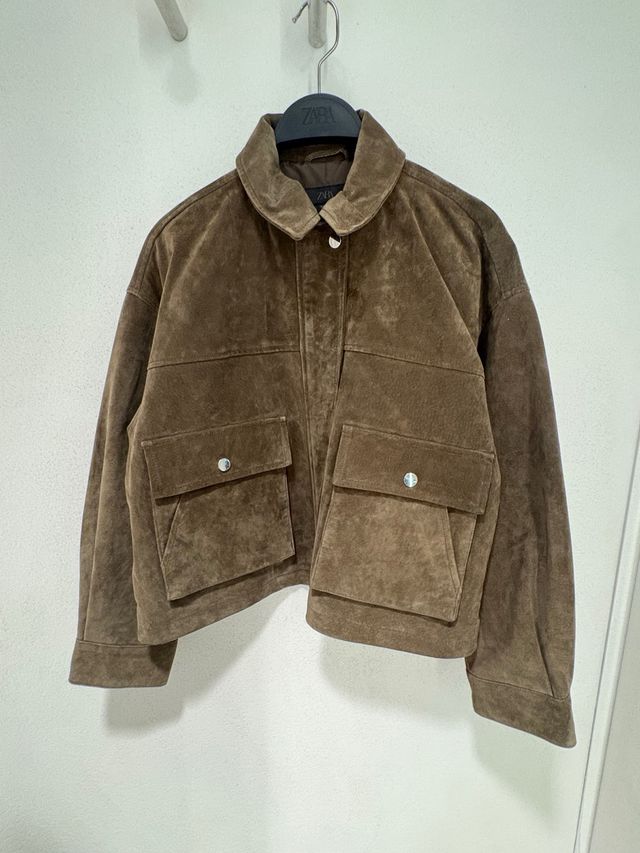 Zara Fur Leather 100% Bomber Jacket – Khaki TikTok