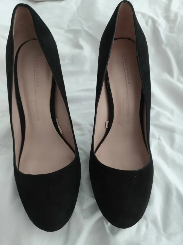 Zara Zapatos Tacón Ante Negro 10cm