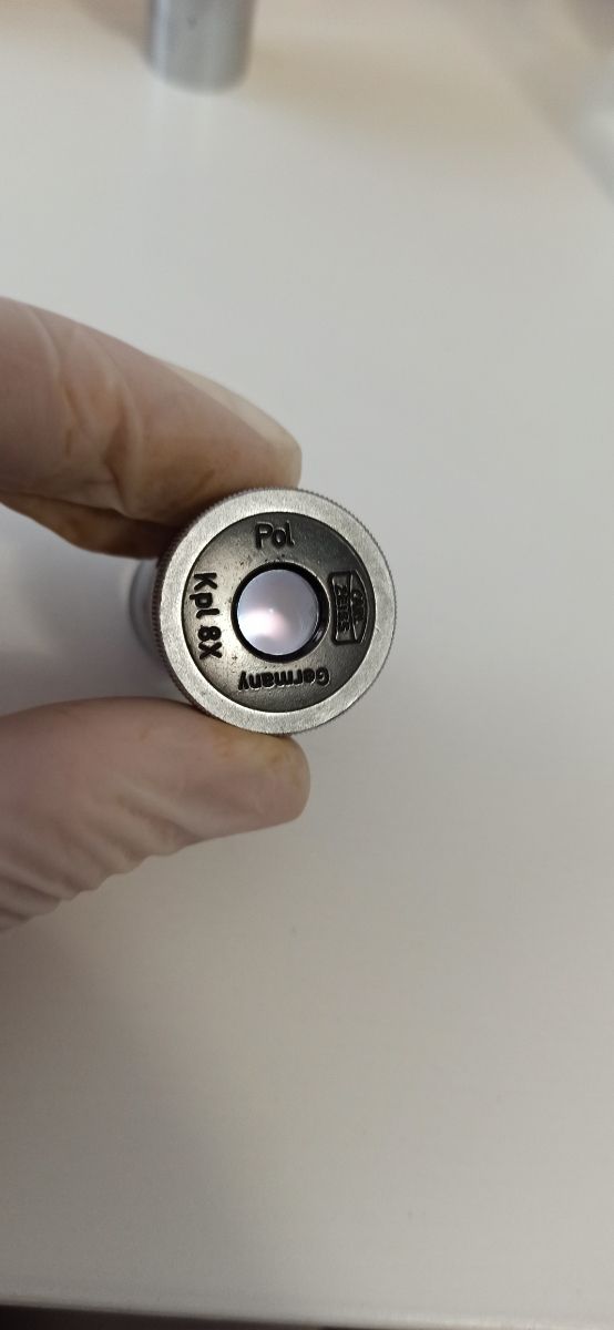 Detalles del productoOcular Carl Zeiss Kpl 8X Pol para microscopio. Montura de 23mm. Lente giratoria. En buen estado. Dispongo de su gemelo, en peor estado estético. Consultar precio pareja. Medidas del producto