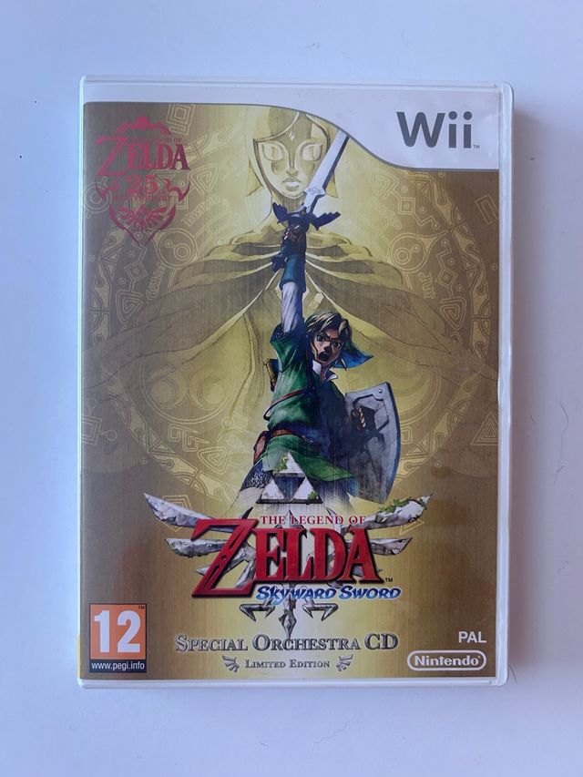 Detalles del productoVideojuego The Legend of Zelda: Skyward Sword para Wii en su edición limitada con CD de orquesta.