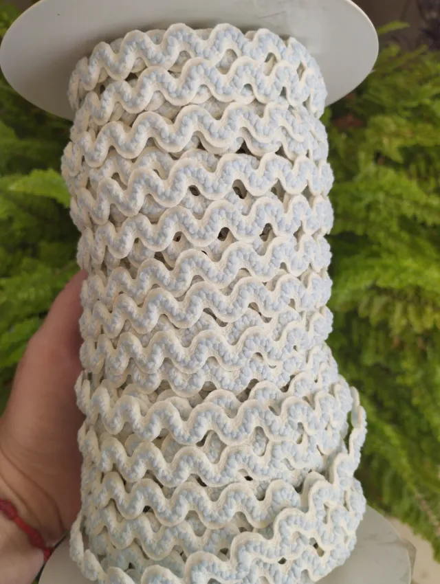 〰️Zig Zag celeste y marfil 🫧 (1,5 cm de ancho) Metros sueltos: 0,95 €/m Pieza entera (41,11 metros) a mitad de precio: 19,52€‼️