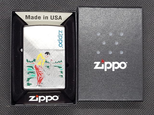 Zippo 2022, Model 28182 Diagonal Wave, Golfer.