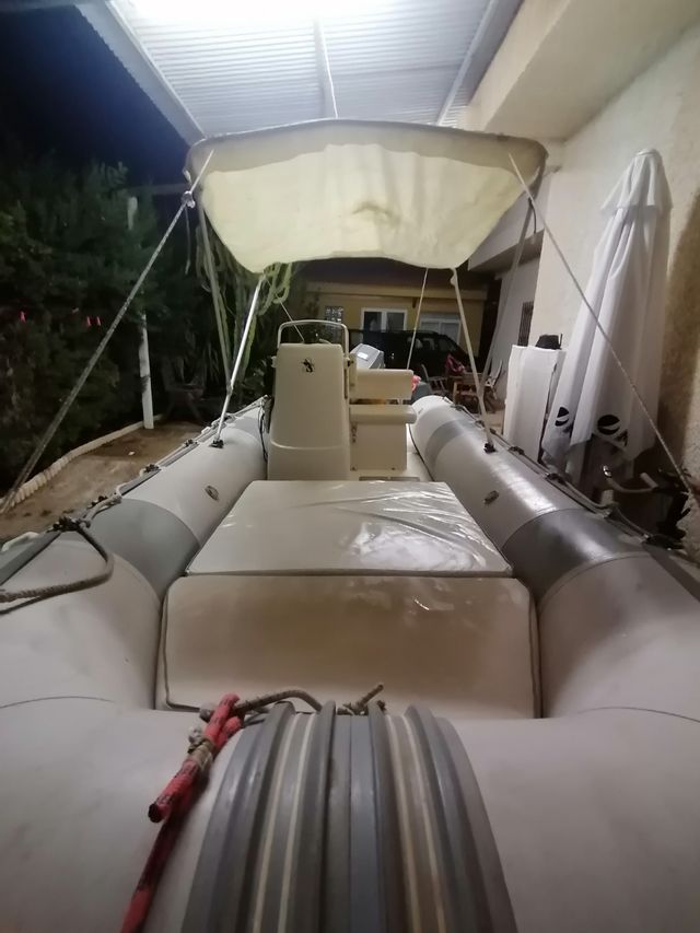 Detalles del productoZODIAK 5 m eslora. Con gran solárium 1.05 * 1.80 se hace una cama y colchonetas para todo el solárium. Repegada en Ilisub hace 4 años Capacidad 8 personas. Motor Johnsons 50cv 2 t revisado. Batería nueva. Power trim en motor y patronera. Papeles en regla ZODIAK, motor y remolque. Incluye : remolque, toldo Bimini 2 arcos. Chalecos 8 personas. Ancla, bichero, remo. Escalera baño. Botas agua caña alta y factura última revisión 1 mes.Precio algo negociable. 6500. Medidas del producto