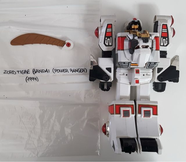 Figura de acción Zord Tigre de la serie Power Ranger. - Fabricado por Bandai. - Año de lanzamiento: 1994. - Incluye accesorio tipo sable.