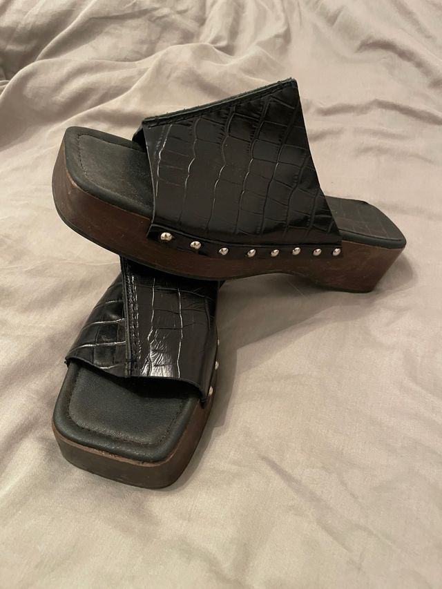 Zuecos negros plataforma suela madera cocodrilo