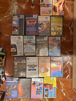 Colección de 19 cintas VHS con películas infantiles y familiares. Se vende todo junto. Buen estado y todas originales. - Incluye títulos como Stuart Little, Toy Story, Shrek, Jimmy Neutrón, Chicken Run, Antz, y más. - Formato VHS.