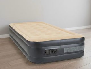 Cama hinchable de PVC, con superficie de velur suave. Con almohada incorporada y bomba eléctrica. Incluye bolsa de almacenaje. A94 x L198 x A46 cm. Solo ha sido usada en 2 ocasiones, la vendo porque quiero comprar una individual. - Color beige y gris oscuro. - Bomba de aire eléctrica integrada para inflado rápido.