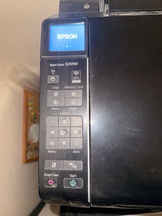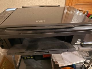 Impresora con escáner. No se si imprime, la ultima vez se usó para escanear fotos. La pantalla enciende y se oye ruido. Incluyo cable de corriente, cable para conectar a pc y cd con drivers. Se vende para piezas.