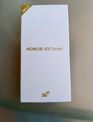 Teléfono móvil Honor 400 Smart con conectividad NFC y 5G. - Etiqueta NFC en la esquina superior. - Logo 5G en la parte inferior.