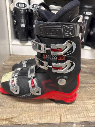 Botas de esquí Salomon en color negro, talla 42. - Cierre con 4 ganchos. - Suela roja. - Medida de la suela: 27.5 MP.