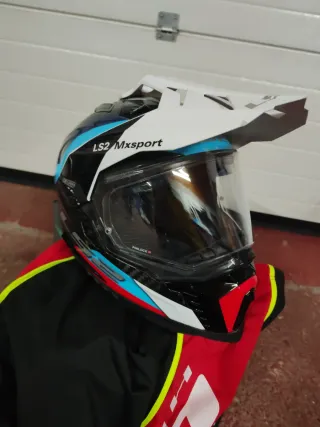Casco LS2 MX701 Explorer con visor. - Diseño deportivo y aerodinámico. - Visera integrada. - Color blanco, negro y azul. Modelo carbono talla M, modelo 2025,usado solo en 3 ocasiones, no me adapto a el