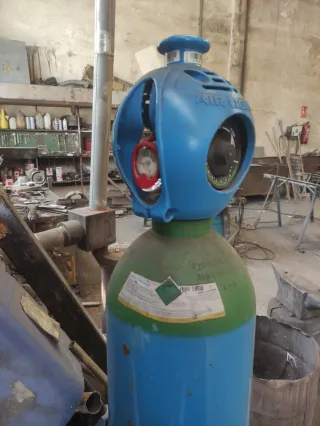 Botella vacía de gas Arcal para soldadura de la marca Air Liquide. Incluye manómetro.