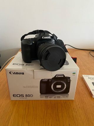 Cámara réflex digital Canon EOS 80D en color negro. Objetivo Sigma 17-50. Ideal para fotografía. Con su caja y cargador original. Segunda batería de regalo. - Sensor CMOS de 24.2 MP. - Sistema de AF de 45 puntos. - Grabación de vídeo Full HD.