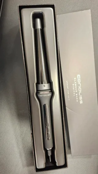 Tenacilla de peinado Corioliss. - Con control de temperatura - Diseño cónico para crear ondas. - Mango ergonómico.