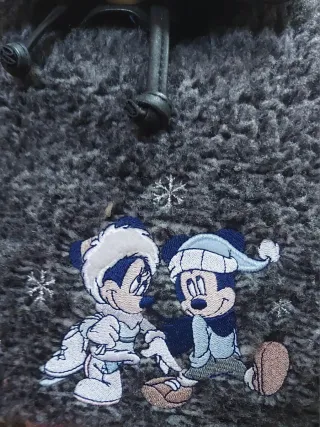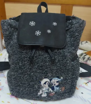 Mochila Original Disney Store London de color gris grafito presenta un diseño acogedor con una textura suave y esponjosa (estilo borrego o peluche) y detalles de los personajes clásicos de Disney, Mickey y Minnie Mouse - Material exterior suave y texturizado. - Solapa frontal con detalles plateados y toda ella efecto glitter. - Cierre de cordón ajustable. - Ilustración de Mickey y Minnie bordados en relieve. - Dos Bolsillos exteriores.