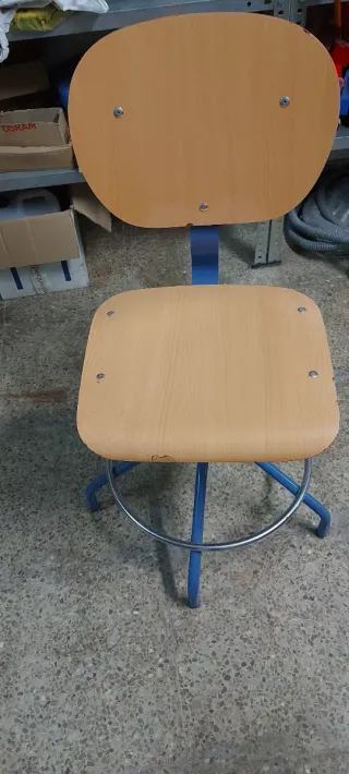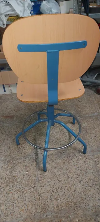 Silla giratoria tipo industrial para casa, hogar, trabajo, cocina, con asiento y respaldo de madera y base de metal, es regulable en altura y giratoria., la tengo tambien en verde, várias unidades. - Diseño moderno y funcional. - Altura ajustable. - Reposapiés metálico circular de acero.