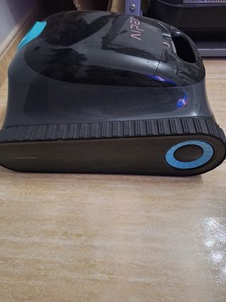 Robot limpiafondos Aiper en color negro con detalles en azul. Diseñado para facilitar la limpieza de tu piscina. - Carcasa de plástico resistente. - Ruedas de goma para un mejor agarre.