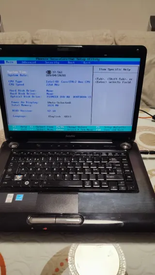 Portátil Toshiba Satellite A350, ideal para quien necesite piezas de repuesto. Enciende y entra en la bios y se apaga. No sé han hecho más pruebas - Modelo: Satellite A350 - CPU: Intel Core 2 Duo 2260 MHz No lleva disco duro Sin cargador Hago envíos