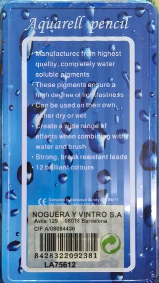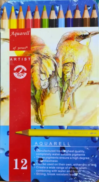 Set de 12 lápices de acuarela Aquarell Artist. - Lápices de acuarela de alta calidad. - Pigmentos completamente solubles en agua. - Alta resistencia a la luz. - Se pueden usar secos o con agua y pincel. - Mina resistente a la rotura.