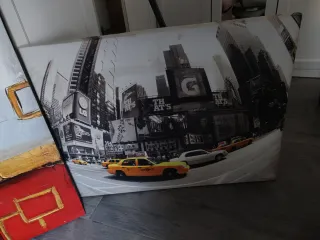 Cuadro decorativo con efecto pintado a mano, ideal para añadir un toque artístico a tu hogar. - Diseño con flor roja y detalles dorados. - Acabado texturizado que simula pintura. - Marco con detalles dorados. Se regala el de new York con la compra