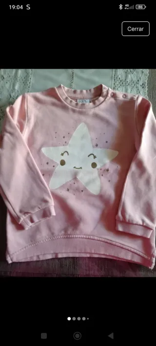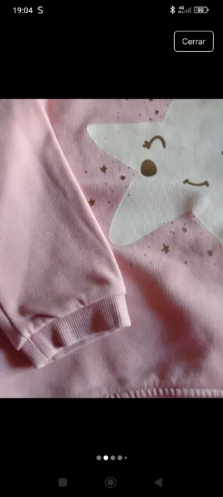 Sudadera de manga larga para niña en color rosa. Zara talla 3/4 años - Diseño con una estrella blanca y detalles de estrellas pequeñas. - Cuello redondo. - Cierre con botones a presión en el hombro.