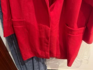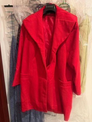 Elegante abrigo de la marca Cortefiel en un llamativo color rojo. Su diseño moderno lo hace perfecto para cualquier ocasión. - Corte amplio y favorecedor. - Bolsillos laterales. - Cuello solapa.