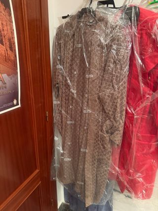 Bata de hombre con un diseño texturizado. - Tejido suave al tacto. - Cierre con botones. - Bolsillos frontales.