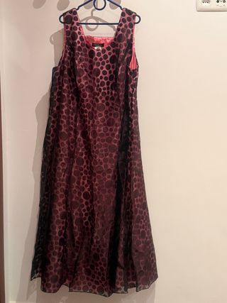 Elegante vestido largo con un estampado de lunares. - Diseño sin mangas. - Tejido con textura. - Forro interior.