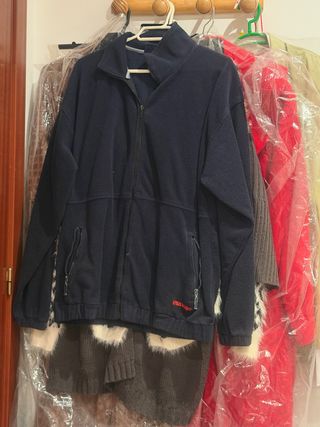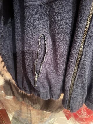 Polar con cremallera frontal y detalles en blanco. - Tejido polar suave. - Dos bolsillos laterales con cremallera. - Puños y cintura elásticos.