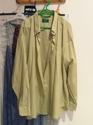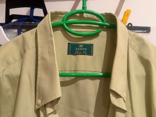 Camisa de manga larga para hombre de la marca KENT. - Color verde. - Cuello abotonado.