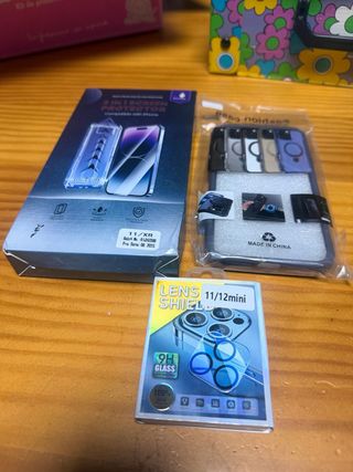 Protector de lente para iPhone 11 y 11 Pro, 12 y 12 mini. Fabricado en cristal 9H. Protectores de pantalla y carcasa imantada para carga o para poner en soporte imantado. - Protección contra arañazos y golpes. - Fácil instalación. - Alta transparencia.