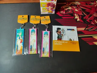 Set de productos oficiales de la Dragon Ball Store de Tokio. Incluye tres llaveros de Bulma, un soporte acrílico de Yamcha y una figura sorpresa sofbits. - Tres llaveros con diseño de Bulma 15 euros cada uno. - Soporte acrílico con personajes y base 25 euros. -Figura sorpresa sofbits 20. Precio todo el conjunto 85